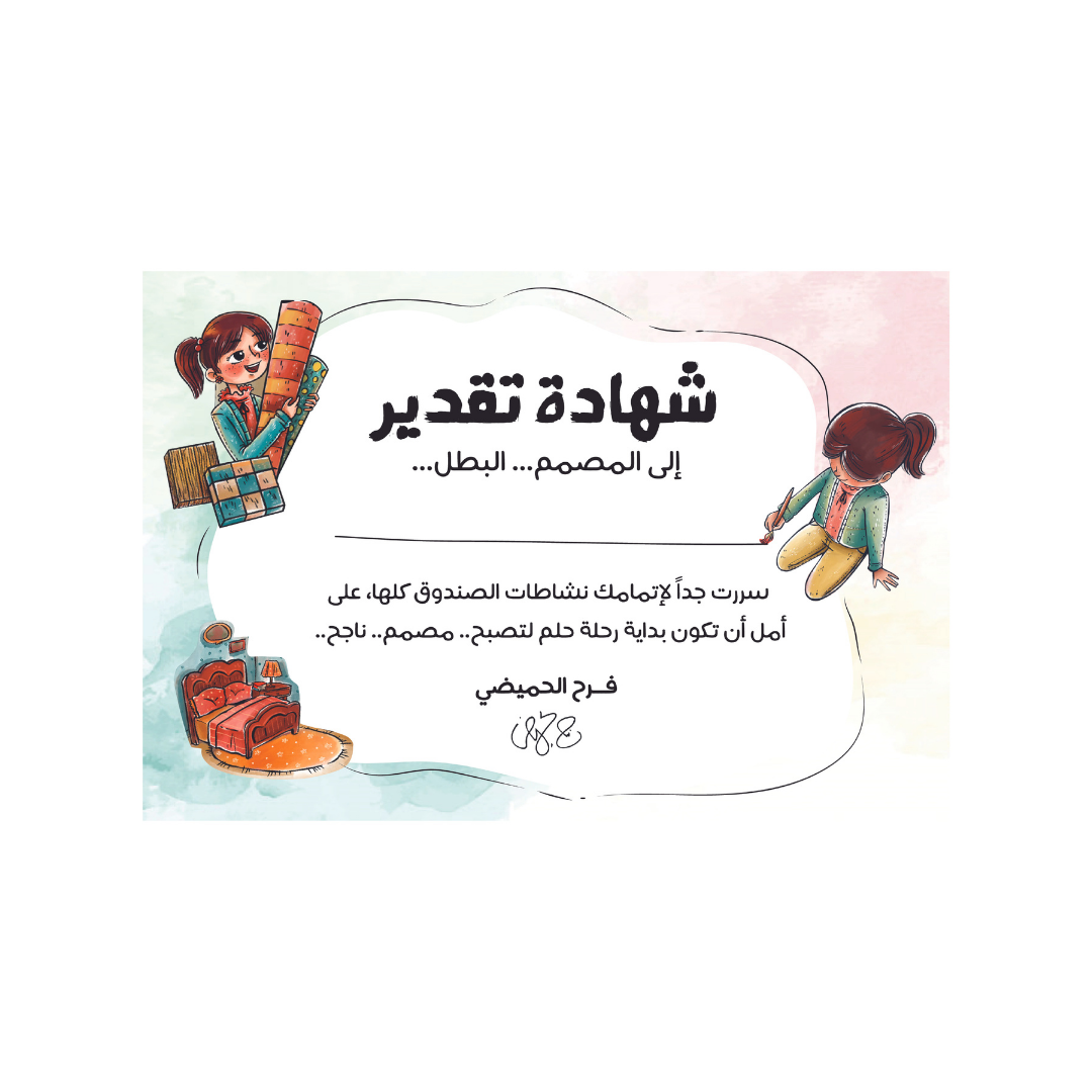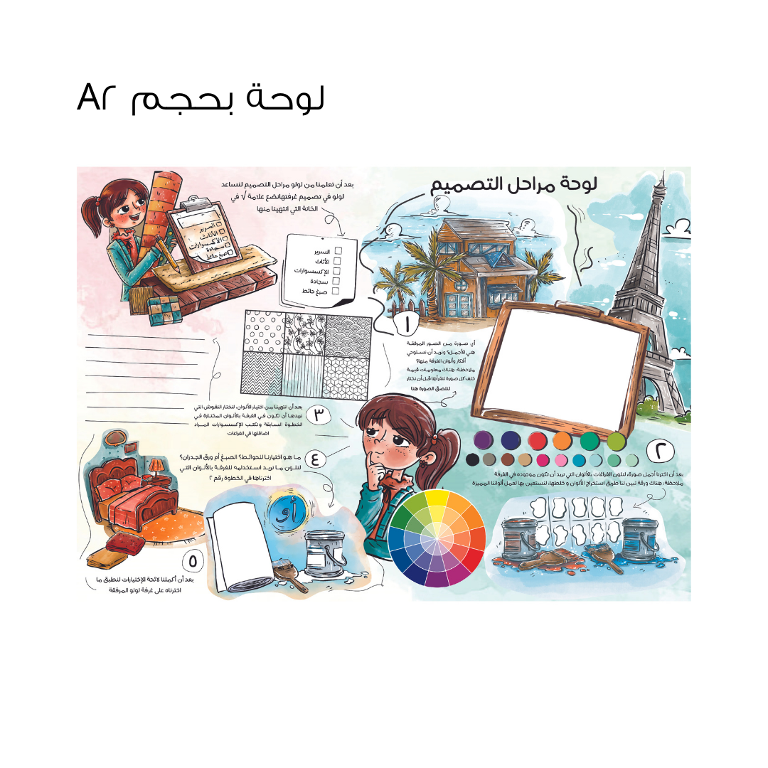 بوكس يتضمن قصه لولو تصمم غرفتها مع أنشطه كلها تتعلق بمجال التصميم الداخلي من عمل موود بورد لغرفة و تنفيذها، تصميم غرفتكم الخاصه و كذلك نشاط إصنعها بنفسك..